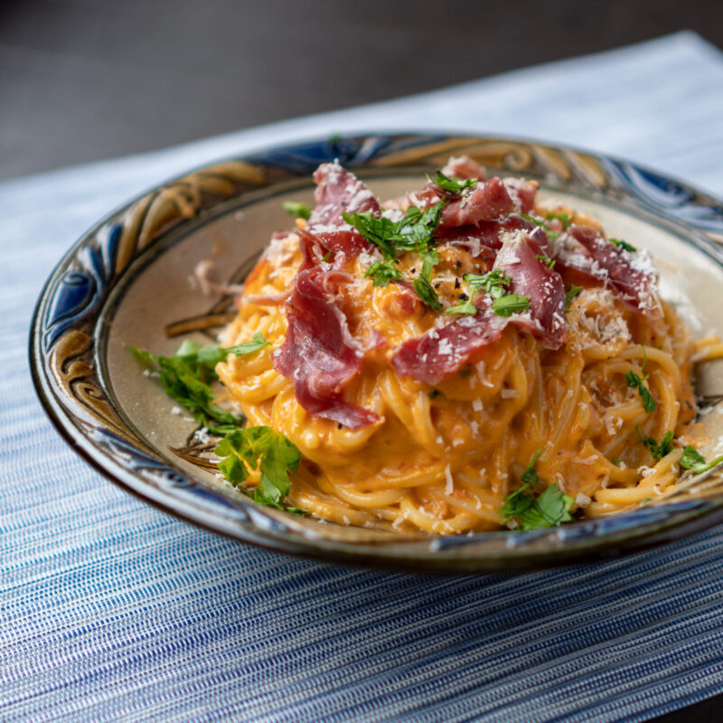 トマトソースに卵黄を絡めたパスタで、自然豊かなトスカーナ州、沿岸沿いのマレンマ地方の郷土料理です。…