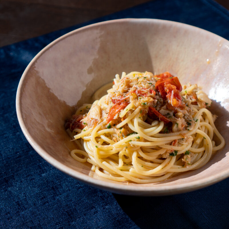 蟹とフレッシュトマトのペペロンチーノ レモン風味