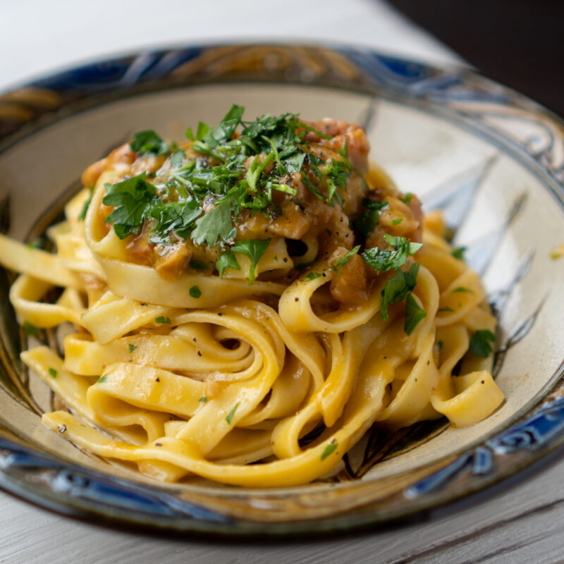 パスタは少し早めにあげてソースを吸わせるのがポイントです。